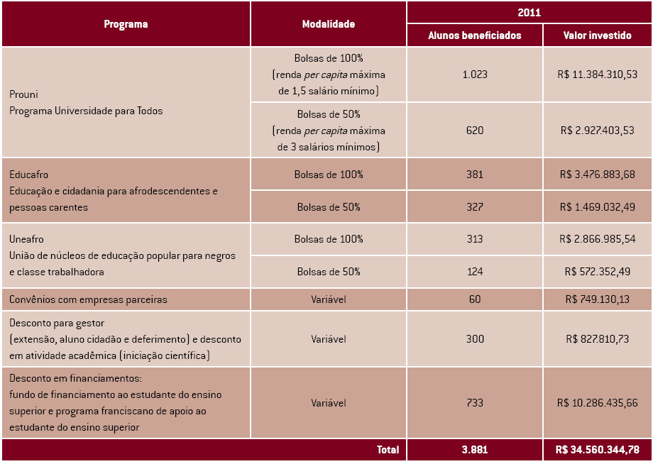 Além de participar dos programas/projetos governamentais de inclusão na educação, a USF disponibiliza aos alunos, institucionalmente e por meio de parcerias, oportunidades para a continuidade dos estudos.