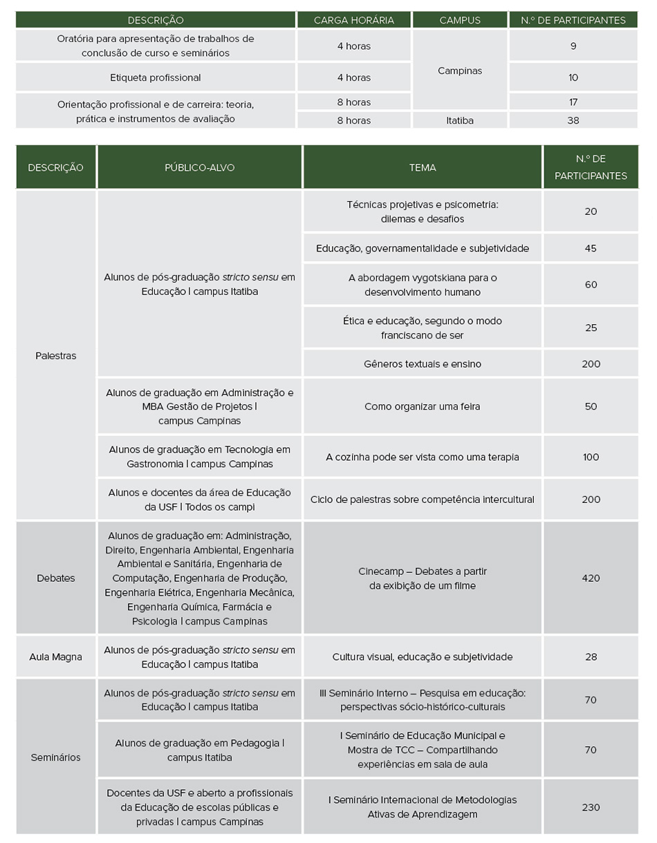 Cerca de mil alunos participaram de encontros promovidos pela USF no campus Itatiba. O XIX Encontro de Iniciação Científica, o XII Encontro de Pós-Graduação, o VII Encontro de Extensão Universitária, o VI Ciclo e os Seminários de Estudos do Homem Contemporâneo tiveram como tema Ciência e Juventude em Movimento: Além das Fronteiras.