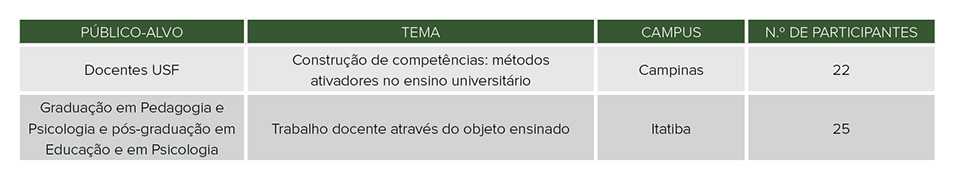 A USF promoveu o V e o VI Encontro do Plano Nacional de Formação de Professores da Educação Básica (Parfor). Realizados a cada semestre no campus Bragança Paulista, os eventos ofertaram palestras e oficinas visando ao aperfeiçoamento de um público total de 70 participantes.