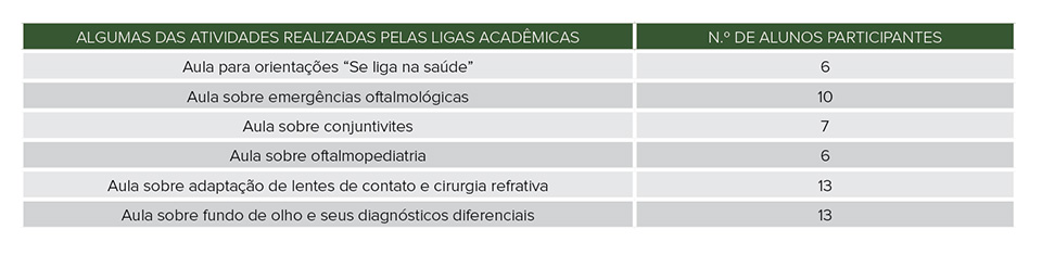 Baseadas em um tripé, as ligas funcionam com aulas presenciais, produção de ciência e pesquisa, além de serviço e ação comunitária.