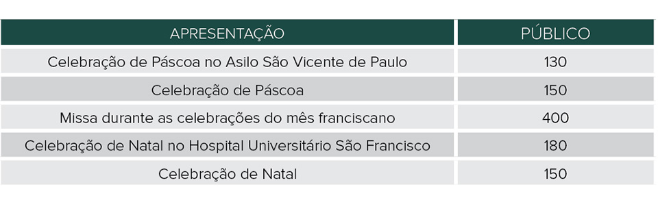 Dentre as apresentações realizadas em 2013, destacam-se: